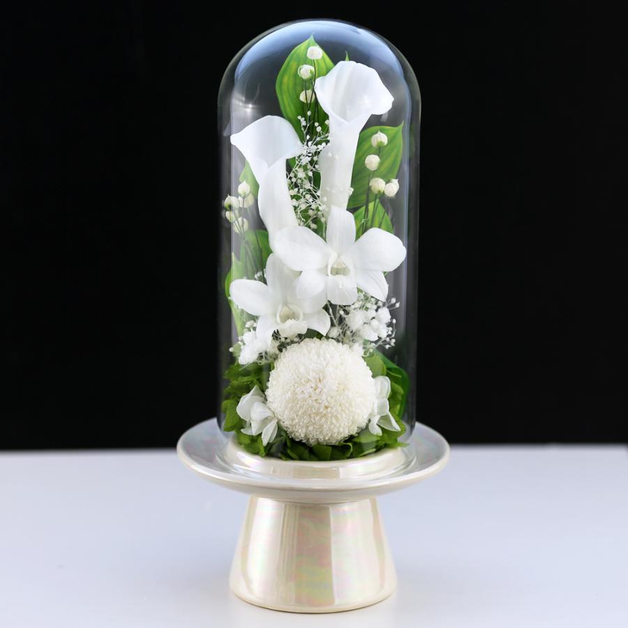 お供え花 栞 しおり レースリボン生成に変更 ドームクリアケース入り プリザーブドフラワー プリザーブドフラワー 通販専門店 花ガーデン